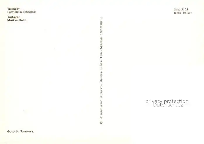 74038749 Taschkent Tachkent Usbekistan Hotel Moskva postalisch nicht gelaufen Erhaltung siehe scans [IrynaD87]