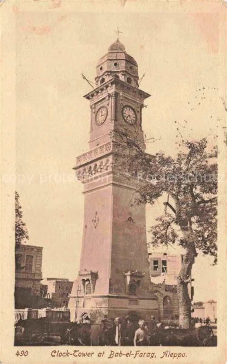 14081412 ALEPPO Alep Syria Clock Tower at Bab-el-Farag postalisch gelaufen Erhaltung siehe scans [FriedD77] old postcard Frie Katcode 13170