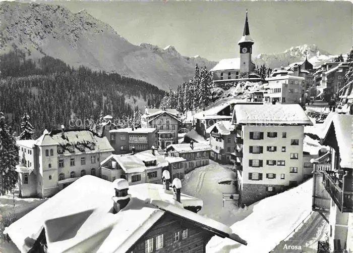 AROSA_GR Ortsansicht mit Kirche Arosa_GR postalisch nicht gelaufen 1962 Erhaltung siehe scans [FriedD77] Frierer