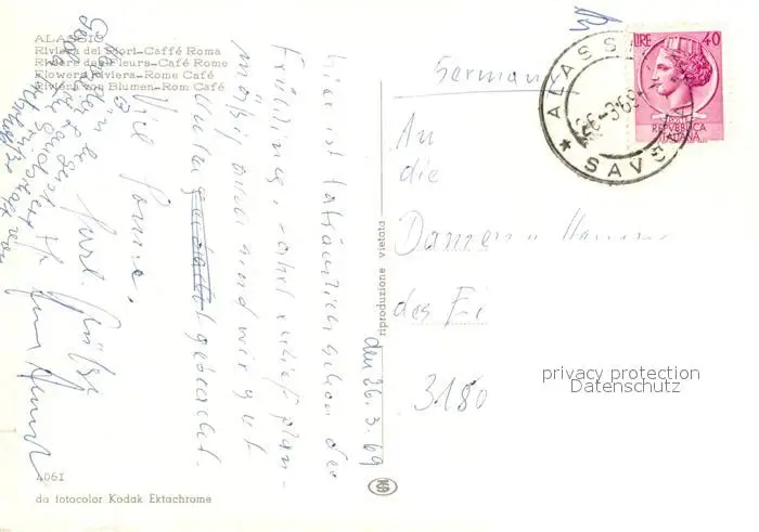 Alassio Caffe Roma Riviera dei Fiori Alassio postalisch gelaufen 1969 Erhaltung siehe scans [WerneD78] WernPID7