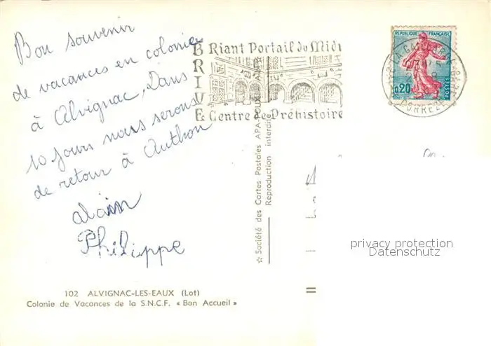 Alvignac Colonie des Vacances de la S.N.C.F. Bon Accueil Alvignac postalisch gelaufen 1963 Erhaltung siehe scans [FriedD77] Frierer