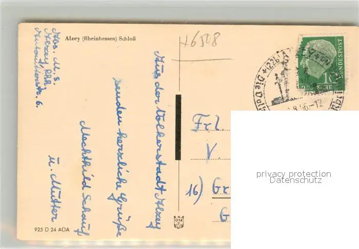 Alzey Schloss Alzey postalisch gelaufen 1956 Erhaltung siehe scans [FriedD77] Frierer