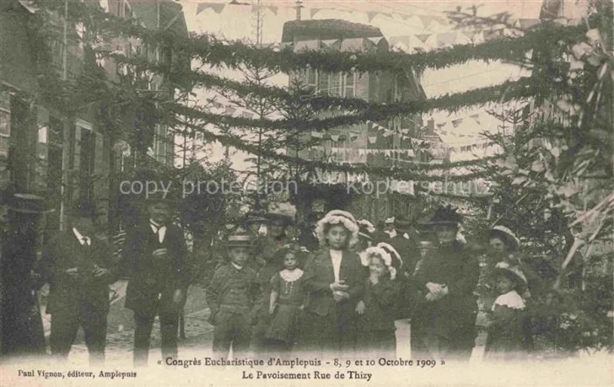 14099712 Amplepuis Villefranche-sur-Saone 69 Rhone Congrès Eucharistique d'Amplepuis Le Pavoisement Rue de Thizy postalisch nicht gelaufen Erhaltung siehe scans [FriedD77] Frie Katcode 11170069269006