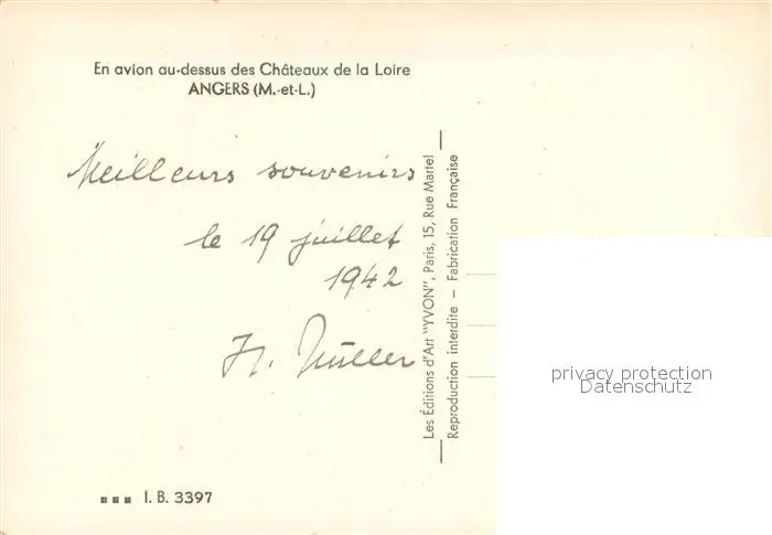 Angers Vue aerienne Angers postalisch nicht gelaufen 1942 Erhaltung siehe scans [WerneD78] WernPID7