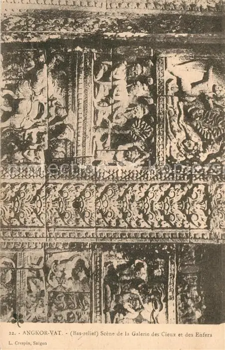 Angkor_Wat Bas relief Scène de la Galerie des Cieux et des Enfers Angkor_Wat postalisch nicht gelaufen 1921-1965 Erhaltung siehe scans [FriedD77] Frierer