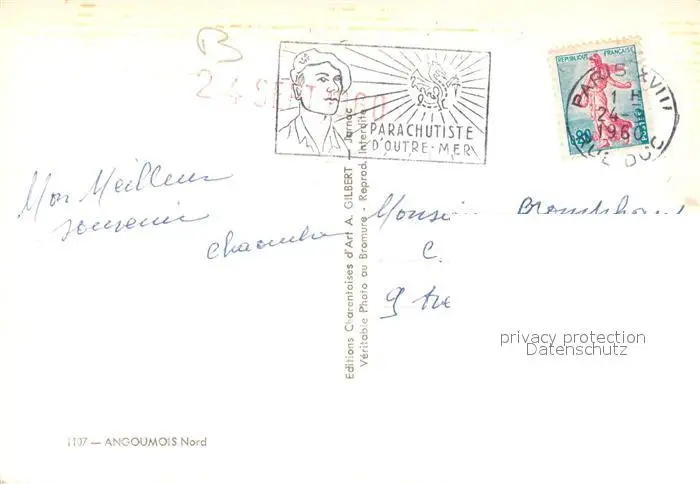 Angoumois Gebietskarte postalisch gelaufen 1960 Erhaltung siehe scans [WerneD78] WernPID7