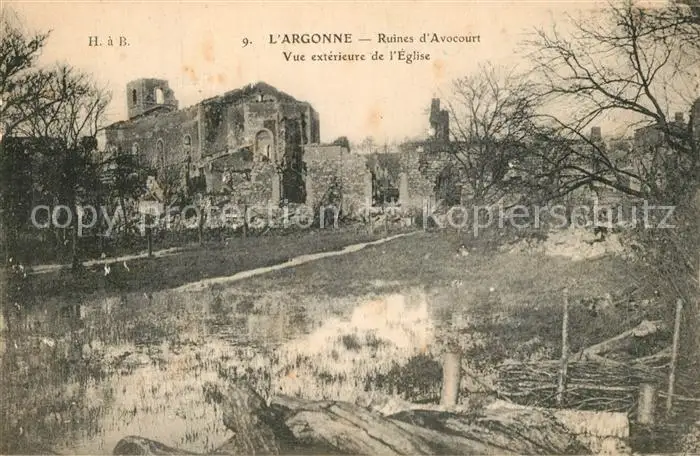 Argonnen_Region Ruines d’Avocourt Vue exterieure de l'Eglise Argonnen Region postalisch nicht gelaufen bis 1920 Erhaltung siehe scans [WerneD78] WernPID7