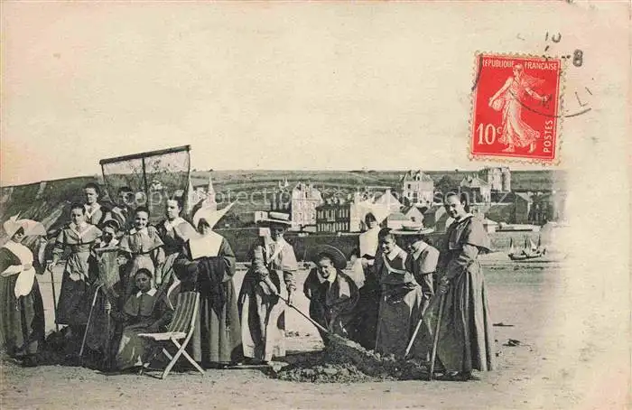 14057952 Arromanches-les-Bains 14 Calvados A la plage postalisch gelaufen Erhaltung siehe scans [FriedD77] carte postale Frie Katcode 11170014114021