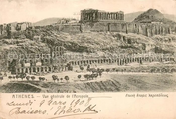 Athenes_Athen Vue generale de l'Acropole Athenes Athen postalisch gelaufen 1908 Erhaltung siehe scans [WerneD78] WernPID7