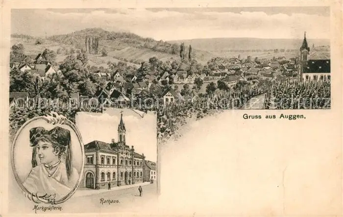 Auggen Kategorie Alte Ansichtskarten Postkarten bx56247 Auggen Tracht Rathaus Auggen postalisch gelaufen Erhaltung siehe scans [NatalD47]