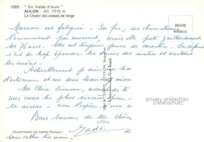 Aulon_Hautes-Pyrenees Chalet des classes de neige en Vallée d'Aure Aulon Hautes-Pyrenees postalisch nicht gelaufen 1976 Erhaltung siehe scans [FriedD77] Frierer