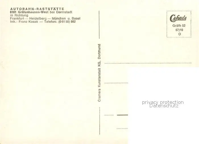 Autobahn Rastst?tte Gr?fenhausen-West postalisch nicht gelaufen nach 1965 Erhaltung siehe scans [PaolaD17] PaolPID1