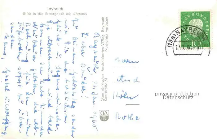 alte Postkarte BAYREUTH Blick in die Braugasse mit Rathaus postalisch gelaufen Erhaltung siehe scans [WerneD78]
