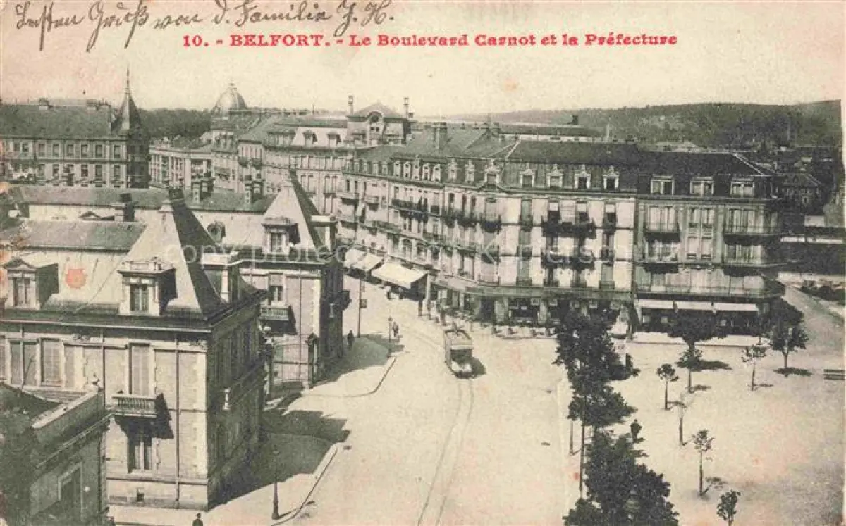 alte Postkarte BELFORT 90 Boulevard Carnot et la Préfecture postalisch gelaufen Erhaltung siehe scans [FriedD77]