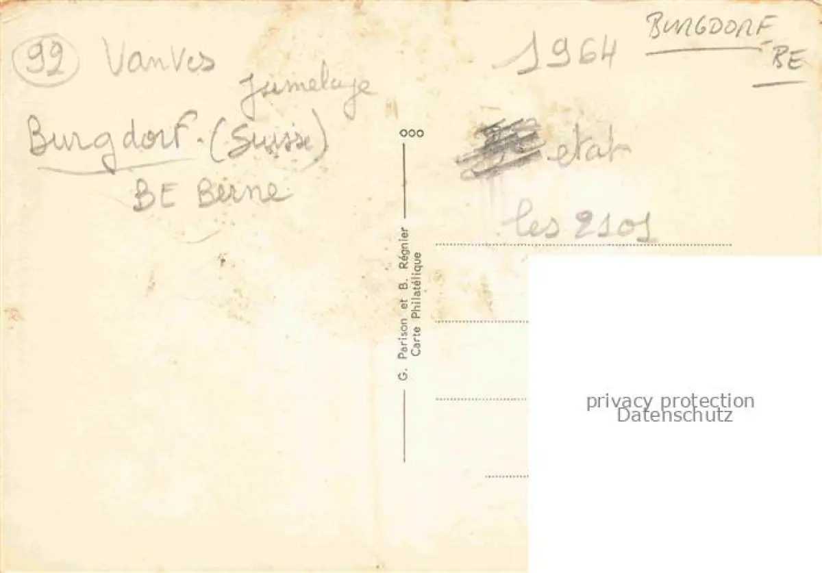 14105445 BURGDORF BE Jumelage Européen postalisch nicht gelaufen Erhaltung siehe scans [FriedD77] Frie Katcode 11470060150004