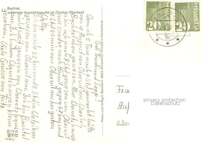 Bachtel_Kulm Aussichtspunkt Zuercher Oberland Landschaftspanorama Alpen Bachtel Kulm postalisch gelaufen 1982 Erhaltung siehe scans [FriedD77] Frierer