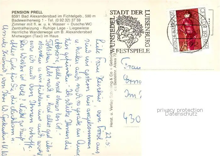 Bad_Alexandersbad Pension Prell Bad_Alexandersbad postalisch gelaufen 1992 Erhaltung siehe scans [LiesaD40] LiesID40