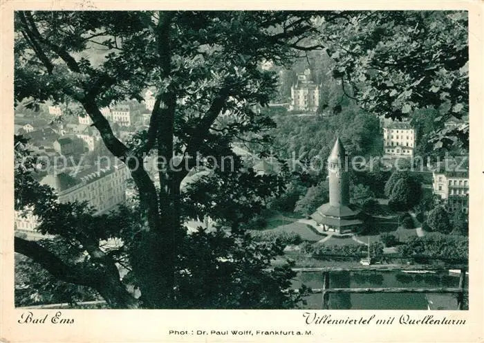 AK / Ansichtskarte Bad_Ems Villenviertel mit Quellenturm Bad_Ems