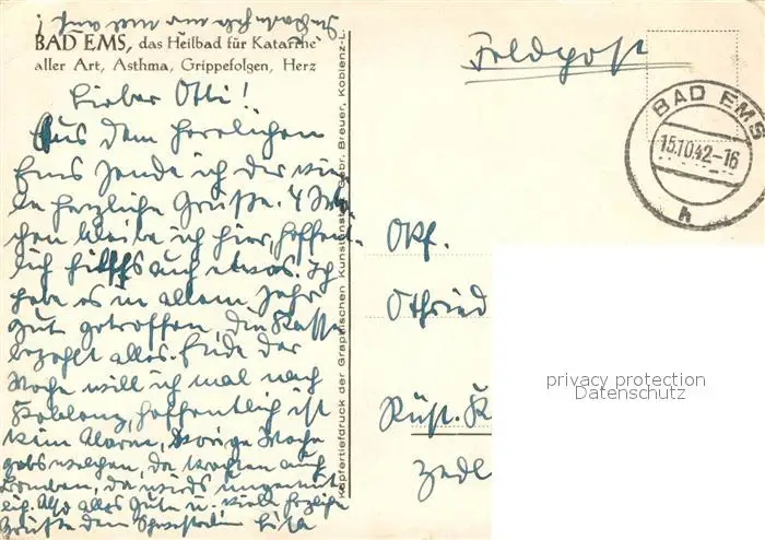 Bad_Ems Villenviertel mit Quellenturm Bad_Ems postalisch gelaufen 1942 Feldpost Erhaltung siehe scans [WerneD78] Feldpost WernPID7