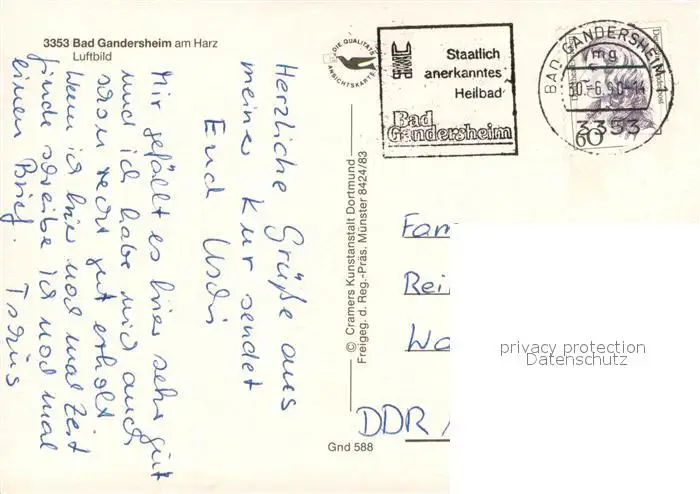 Bad_Gandersheim Fliegeraufnahme Bad_Gandersheim postalisch gelaufen 1990 Erhaltung siehe scans [LiesaD40] LiesID40
