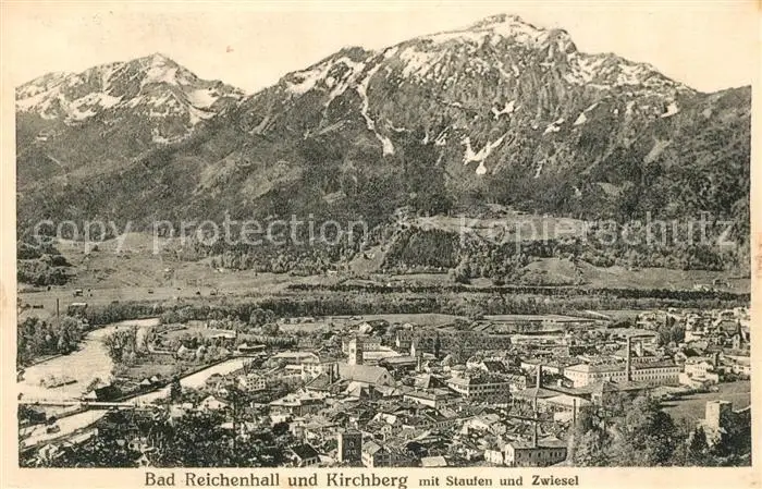 Bad_Reichenhall Fliegeraufnahme mit Kirchberg Staufen und Zwiesel Bad_Reichenhall postalisch nicht gelaufen 1929 Erhaltung siehe scans [LiesaD40] LiesID40
