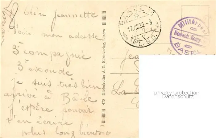 Basel_BS Kaserne Basel_BS postalisch gelaufen 1920 Erhaltung siehe scans [WerneD78] WernPID7