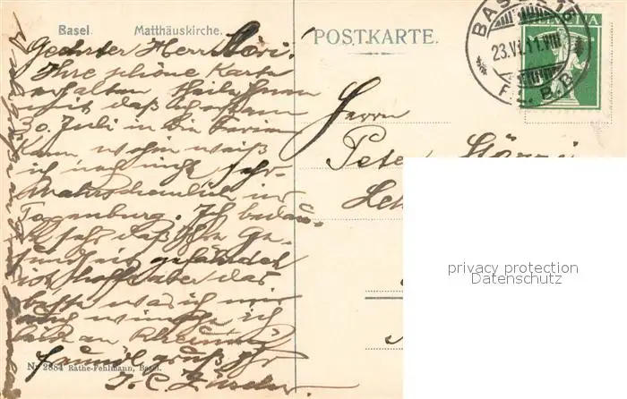 Basel_BS Matthaeuskirche Basel_BS postalisch gelaufen 1911 Erhaltung siehe scans [LiesaD40] LiesID40