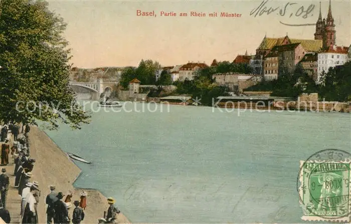 Basel_BS Partie am Rhein mit Muenster Basel_BS postalisch gelaufen 1908 Erhaltung siehe scans [FriedD77] Frierer