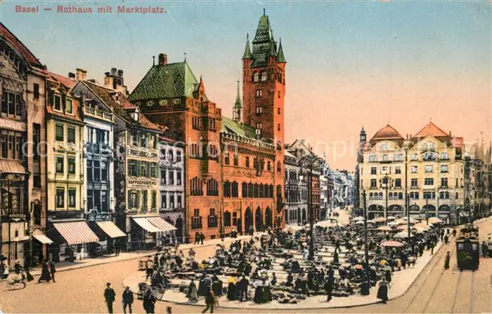 Basel_BS Rathaus Marktplatz Basel_BS postalisch gelaufen bis 1920 Erhaltung siehe scans [FriedD77] Frierer