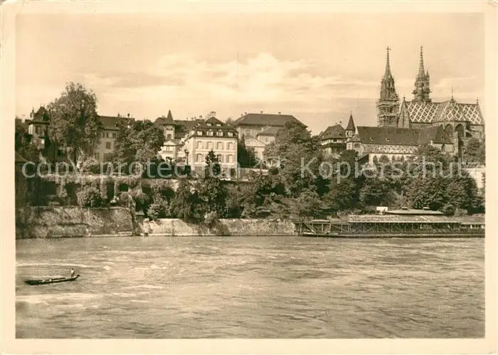AK / Ansichtskarte Basel_BS Rheinpartie mit Muenster Basel_BS