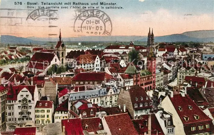 Basel_BS mit Rathaus Muenster Basel_BS postalisch gelaufen 1926 Erhaltung siehe scans [LiesaD40] LiesID40
