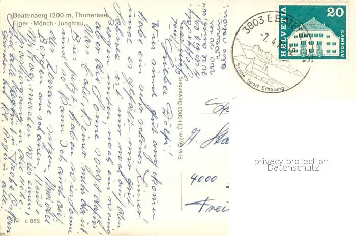 Beatenberg mit Thunersee Eiger Moench und Jungfrau Beatenberg postalisch gelaufen nach 1965 Erhaltung siehe scans [WerneD78] WernPID7