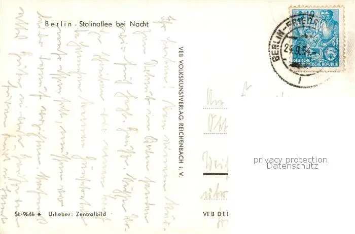 Berlin Stalinallee bei Nacht Berlin postalisch gelaufen 1954 Erhaltung siehe scans [WerneD78] WernPID7