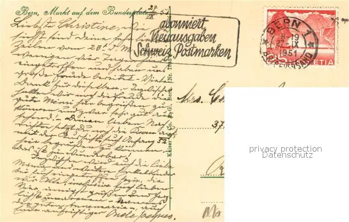 Bern_BE Markt auf dem Bundesplatz Bern_BE postalisch gelaufen 1951 Erhaltung siehe scans [FriedD77] Frierer