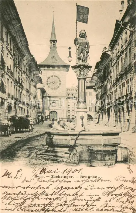 Bern_BE Zaehringer Brunnen Bern_BE postalisch gelaufen 1901 Erhaltung siehe scans [FriedD77] Frierer