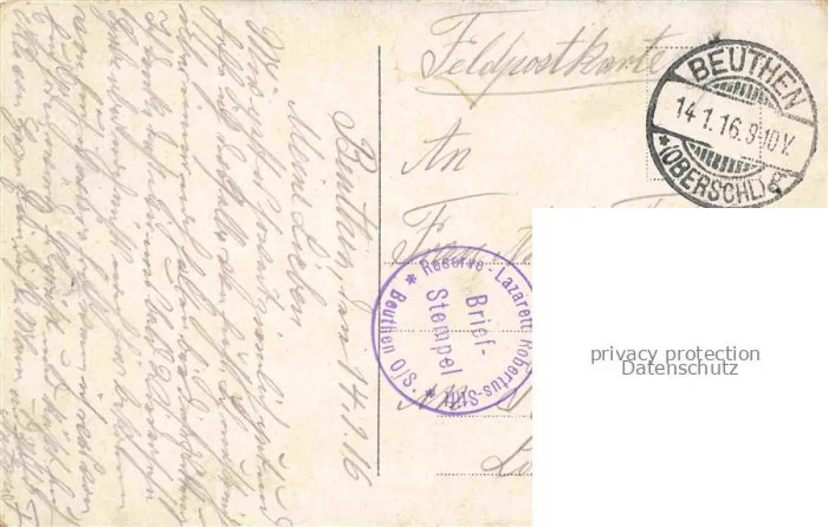 alte Postkarte Beuthen Oberschlesien BYTOM PL Kaiser Franz Josef Platz Café Hindenburg Terrasse Feldpost Reserve-Lazarett Stempel postalisch gelaufen Erhaltung siehe scans [FriedD77]