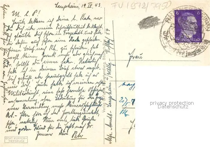 Biberach_Riss Biberach Riss postalisch gelaufen 1943 Erhaltung siehe scans [NatalD47] NataID47