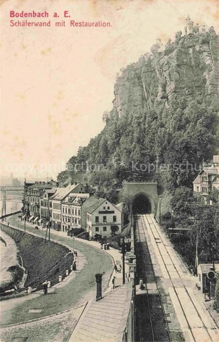 14102234 Bodenbach Elbe-Tetschen DECIN Boehmen Ustecky Kraj CZ Schaeferwand mit Restauration Eisenbahntunnel postalisch gelaufen Erhaltung siehe scans [FriedD77] old postcard Frie Katcode 11520