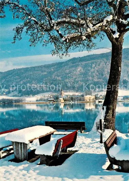 AK / Ansichtskarte Bodensdorf_Ossiacher_See Blick ueber den See auf Stift Ossiach Kloster Winterimpressionen Bodensdorf_Ossiacher_See