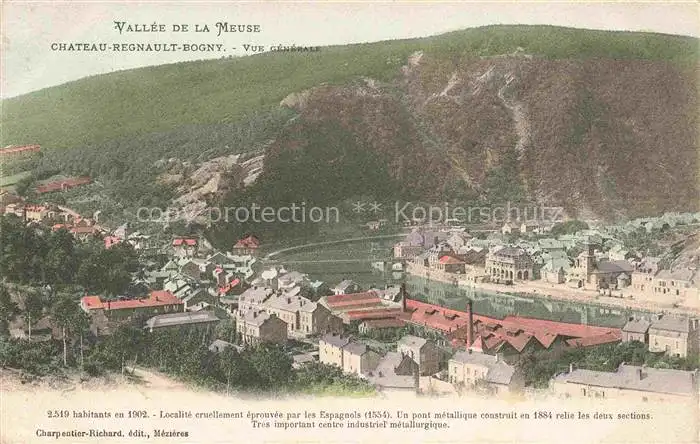 carte postale Bogny Chateau-Regnault 08 Ardennes Vue générale Vallée de la Meuse postalisch gelaufen Erhaltung siehe scans [FriedD77]