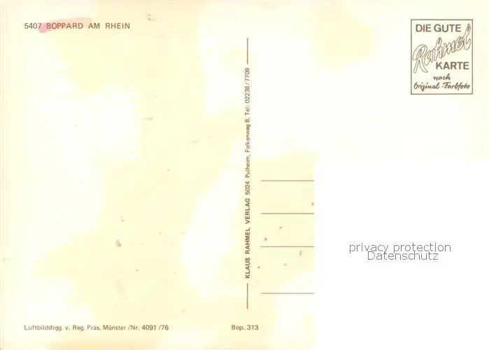 Boppard_Rhein Fliegeraufnahme Boppard Rhein postalisch nicht gelaufen 1976 Erhaltung siehe scans [FriedD77] Frierer