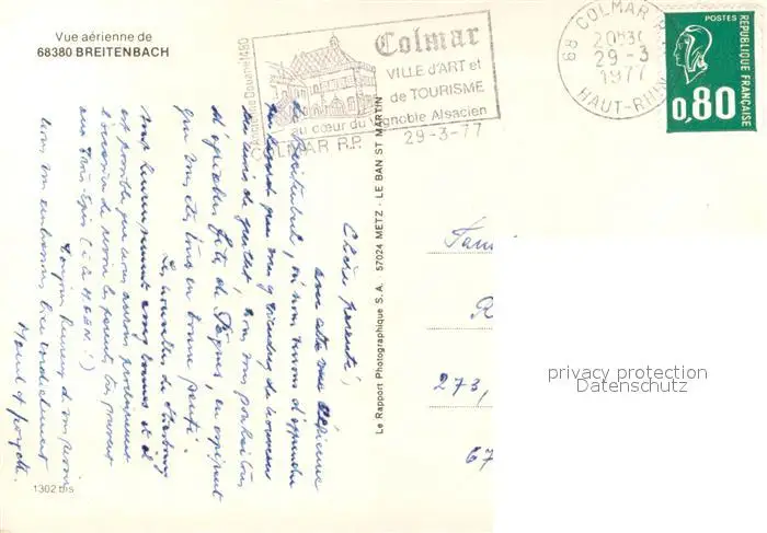 Breitenbach_Bas-Rhin Vue aérienne Breitenbach Bas-Rhin postalisch gelaufen 1977 Erhaltung siehe scans [FriedD77] Frierer