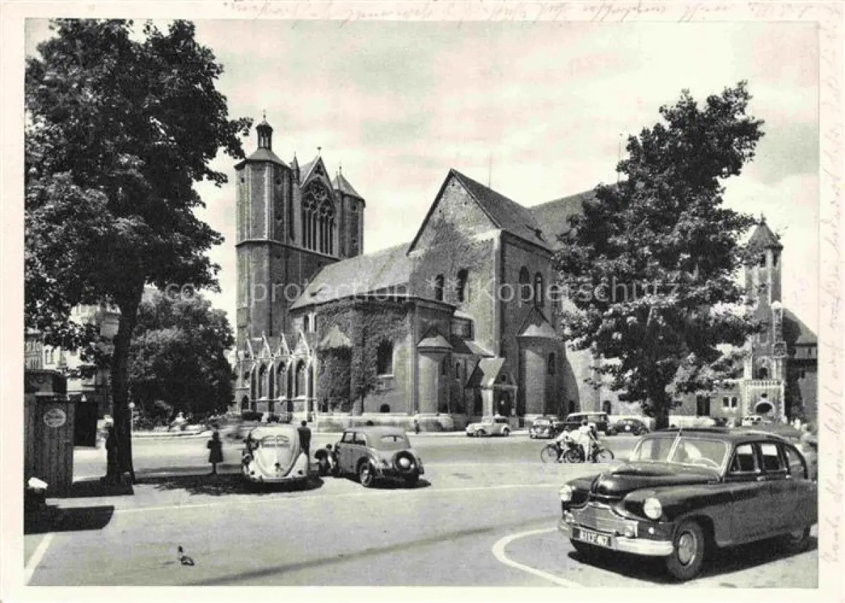AK / Ansichtskarte Brezelfenster VW Kaefer Braunschweig der Dom