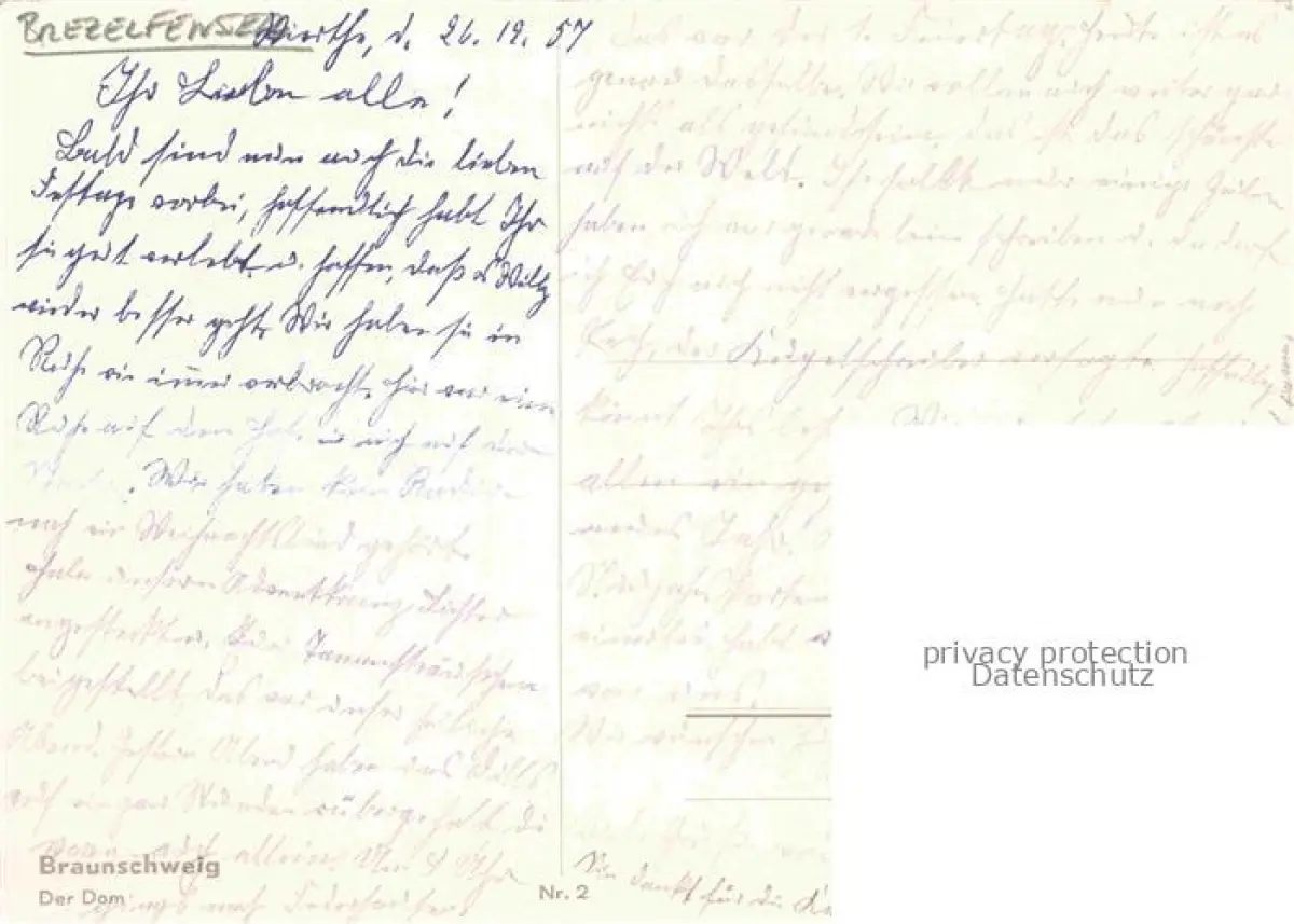 14107064 Brezelfenster VW Kaefer Braunschweig der Dom postalisch nicht gelaufen Erhaltung siehe scans [SanaeD93] Sana Katcode 22020000000900