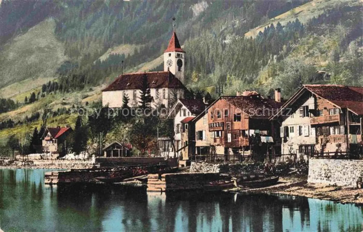 14102440 Brienz Brienzersee BE Haeuserpartie am See Blick zur Kirche postalisch nicht gelaufen Erhaltung siehe scans [FriedD77] Frie Katcode 11470060175240