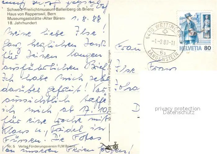 Brienz_BE Schweiz Freilichtmuseum Ballenberg Haus von Rapperswil Museumsgaststaette Alter Baeren Brienz_BE postalisch gelaufen 1988 Erhaltung siehe scans [WerneD78] WernPID7