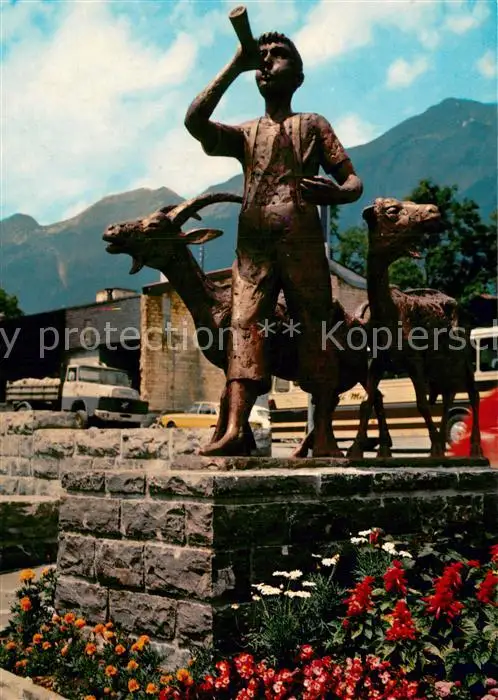 AK / Ansichtskarte Brienz_Brienzersee Der Geissbueb Broncefigur Brienz Brienzersee