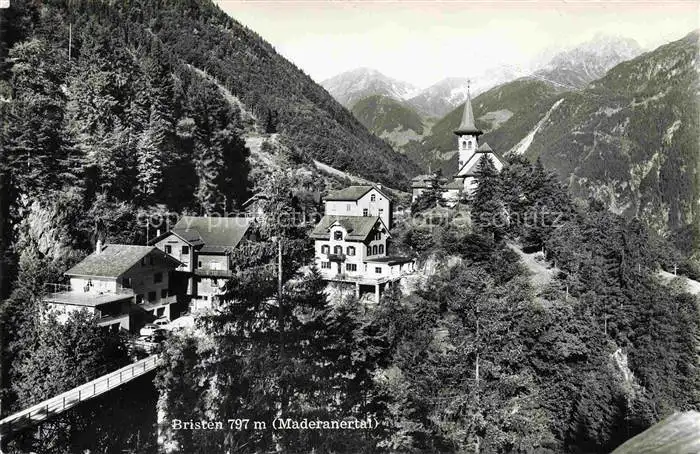 AK / Ansichtskarte Bristen 797m Maderanertal Maderanerthal Silenen UR Bergdorf Ansicht mit Kirche