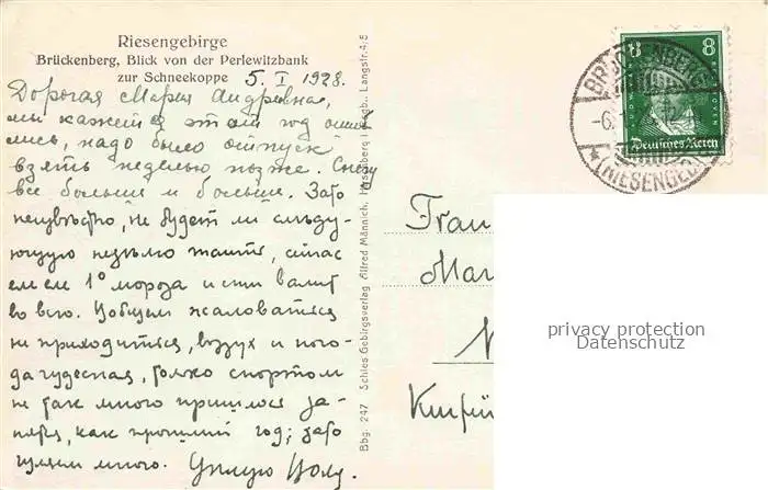 old postcard Brueckenberg Krummhuebel Riesengebirge PL Blick von der Perlewitzbank zur Schneekoppe postalisch gelaufen Erhaltung siehe scans [WerneD78]