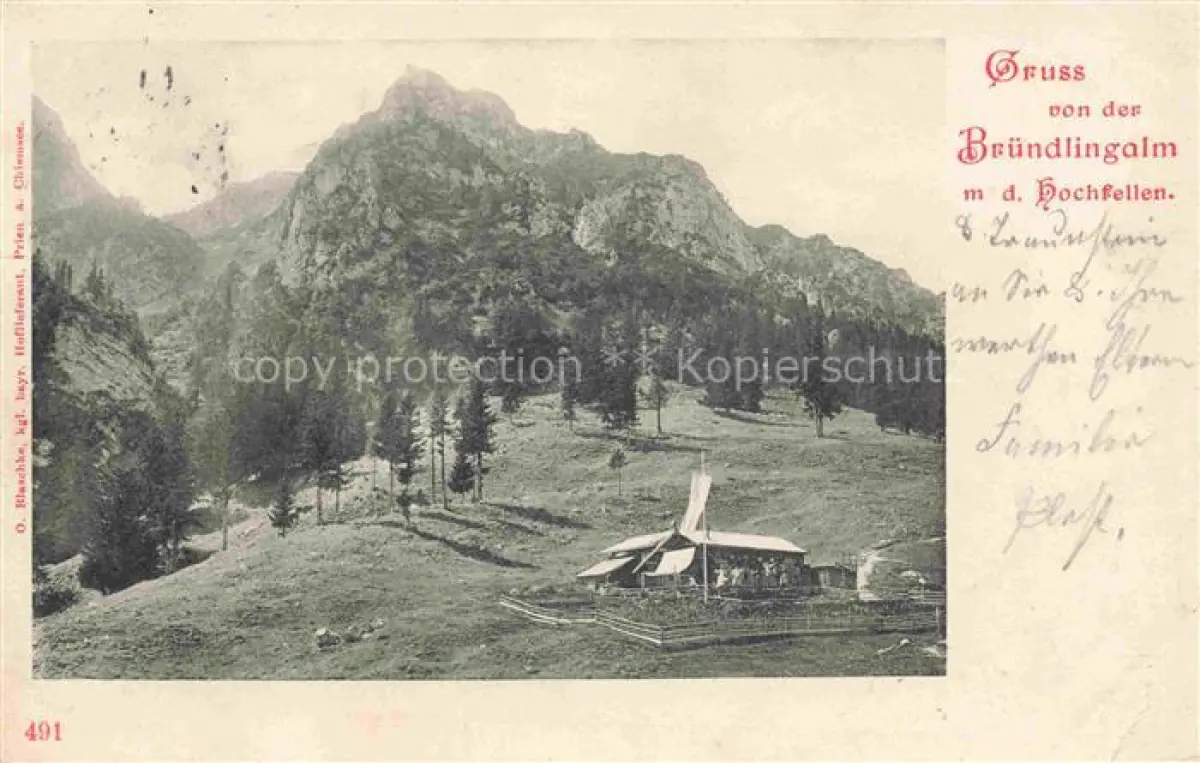 alte Postkarte Bruendlingalm 1161m Hochfelln Chiemgau Bayern Berghaus mit dem Hochfellen postalisch gelaufen Erhaltung siehe scans [FriedD77]
